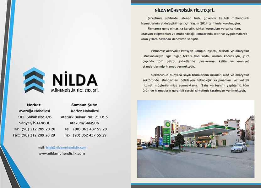 NİLDA MÜHENDİSLİK TİC.LTD.ŞTİ. sektörde istenen hızlı, güvenilir kaliteli mühendislik hizmetlerinin etkinleştirilmesi için Kasım 2014 tarihinde kurulmuştur. Firmamız genç olmasına karşılık, şirket kurucuları ve çalışanları, istasyon ekipmanları ve mühendisliği konularında teori ve uygulamalarda uzun yıllara dayanan deneyime sahiptir.