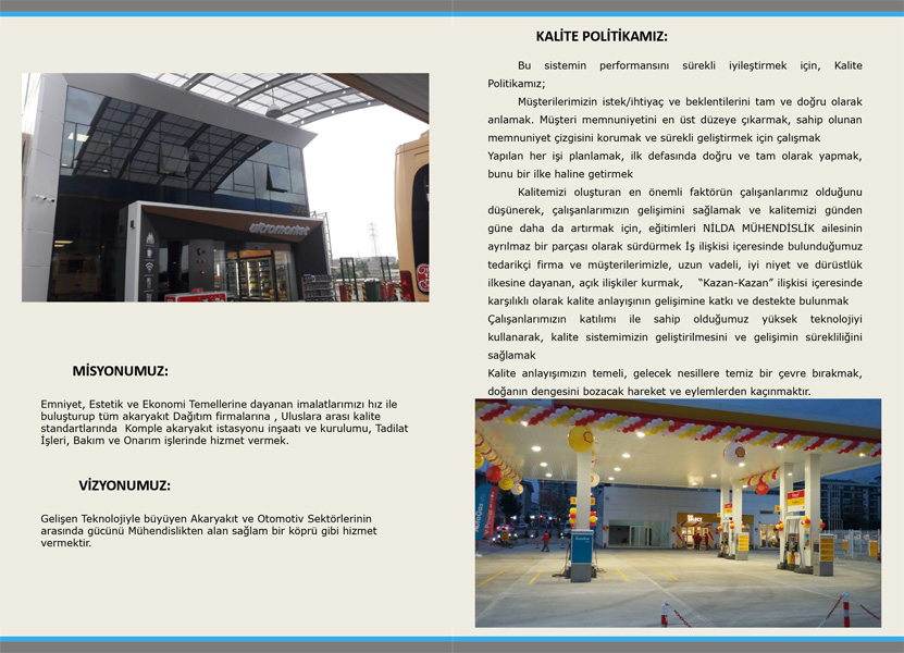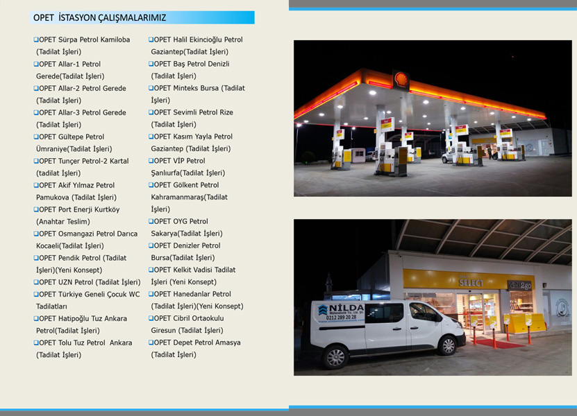 Firmamız akaryakıt istasyon komple inşaatı, tesisatı ve akaryakıt istasyonlarıyla ilgili diğer teknik konularda, uzman kadrosuyla, yurt çapında tüm petrol şirketlerine uluslararası kalite ve emniyet standartlarında hizmet vermektedir.